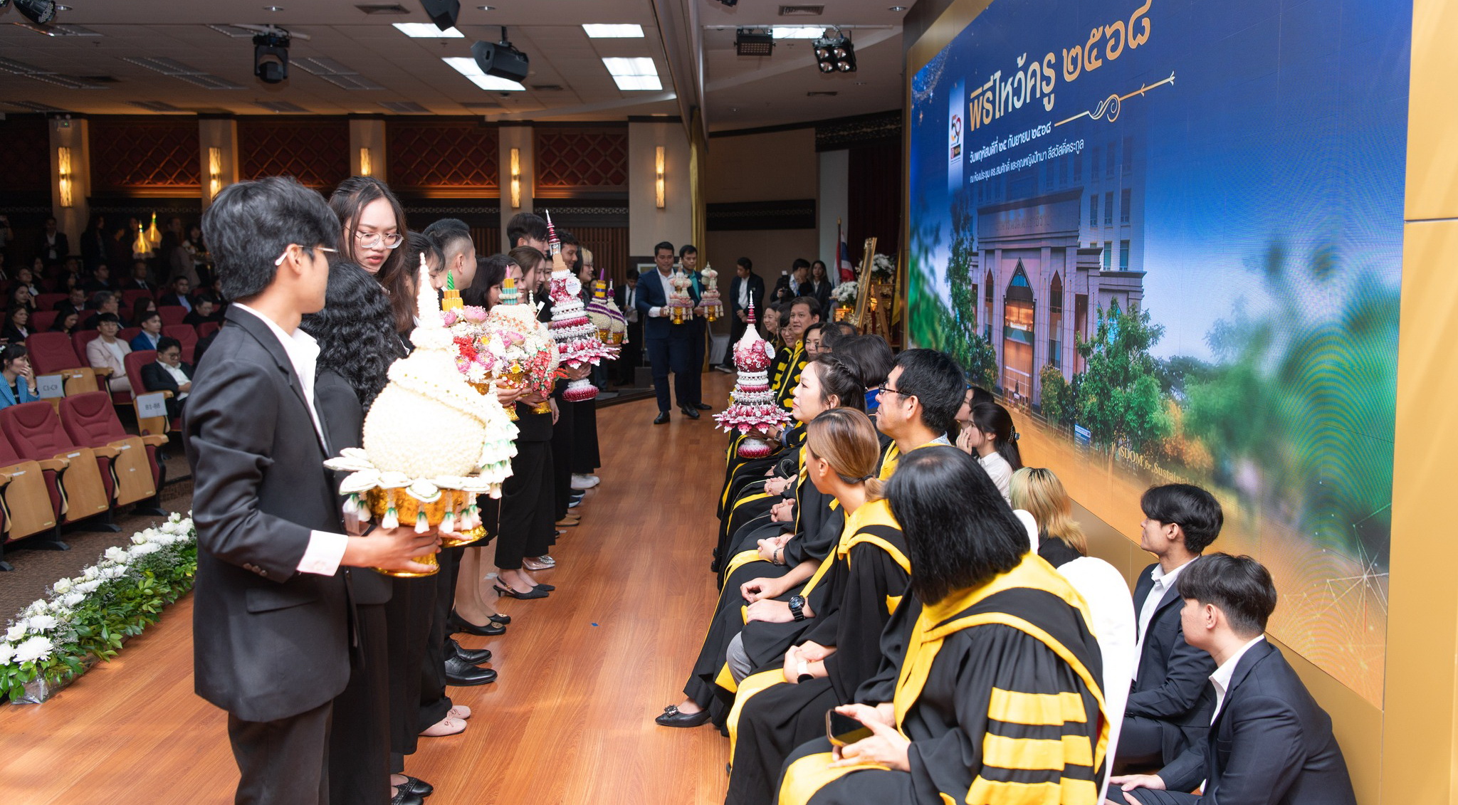 กองบริการการศึกษา ร่วมกับสโมสรนักศึกษาได้จัดโครงการพิธีไหว้ครู ประจำปี 2568 ณ ห้องประชุม ดร.สมศักดิ์และคุณหญิงปัทมา ลีสวัสดิ์ตระกูล